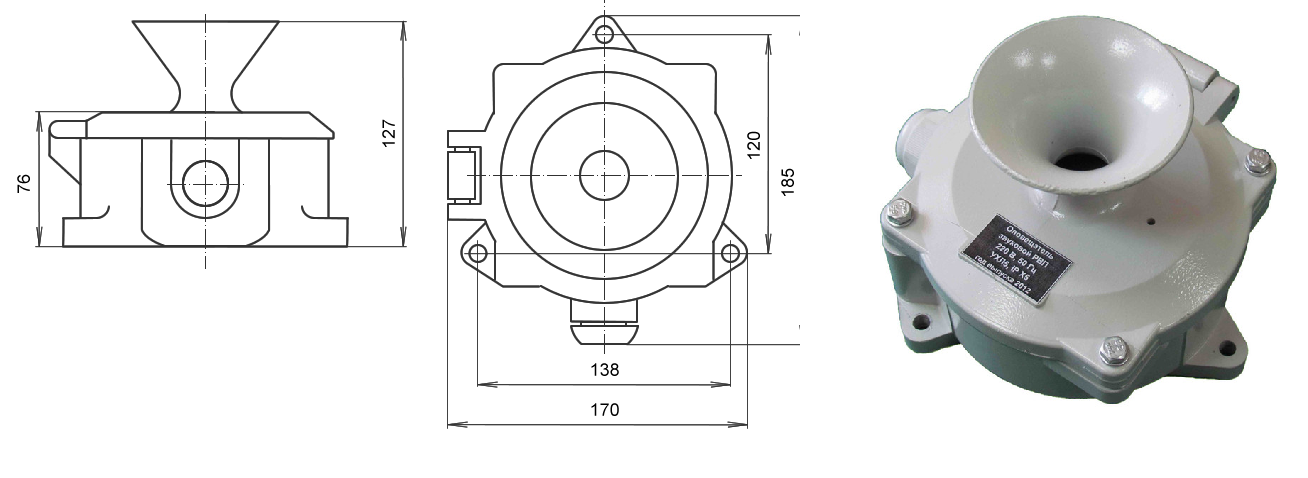 Оповещатель «Ревун РВП-220» 220В 50Гц IP54 95Дб предназначен для подачи звукового сигнала в системах оповещения и тревожной сигнализации.