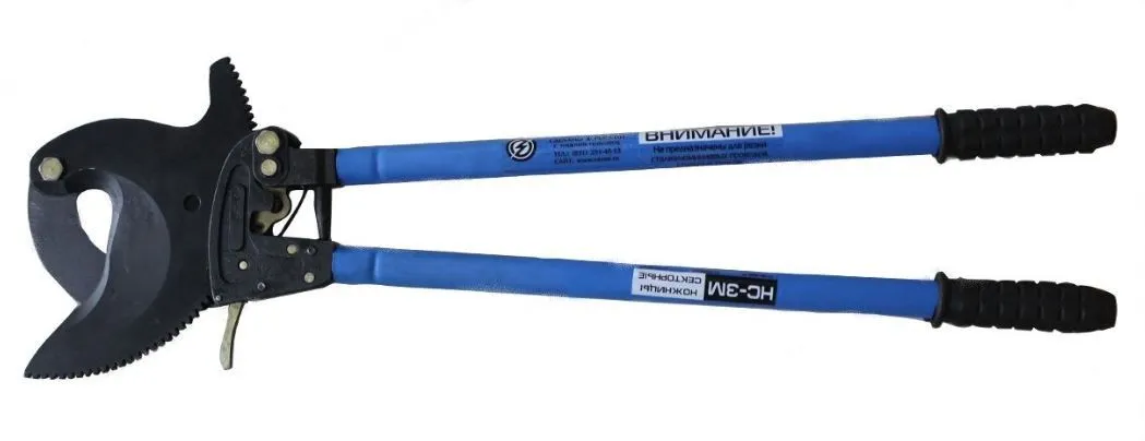 Технологии обработки высококачественной стали, применяемые в производстве режущих частей ножниц, позволяют осуществлять резку кабеля без замятий. Усилие передается через механизм зубчатой передачи.