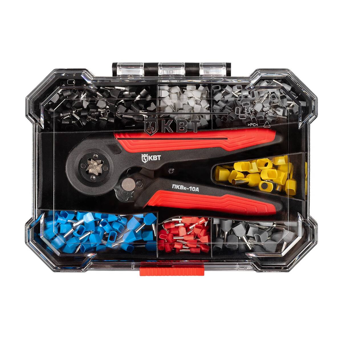 Набор содержит наиболее популярные размеры одинарных и двойных втулочных наконечников с универсальным инструментом для опрессовки втулочных наконечников