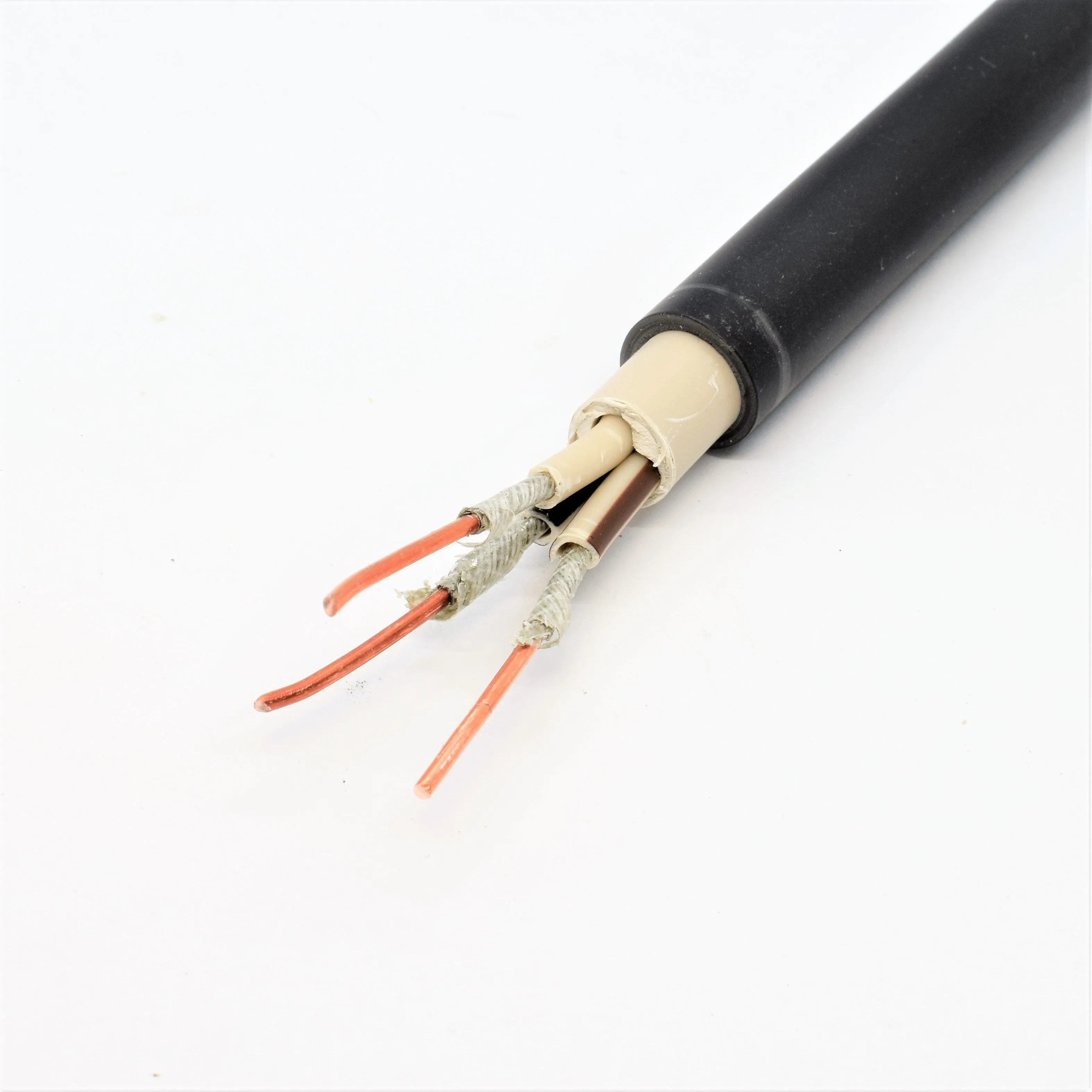 Силовой кабель с медной жилой с изоляцией и оболочкой из ПВХ пониженной пожарной опасности, огнестойкий, с низким дымо- и газовыделением.