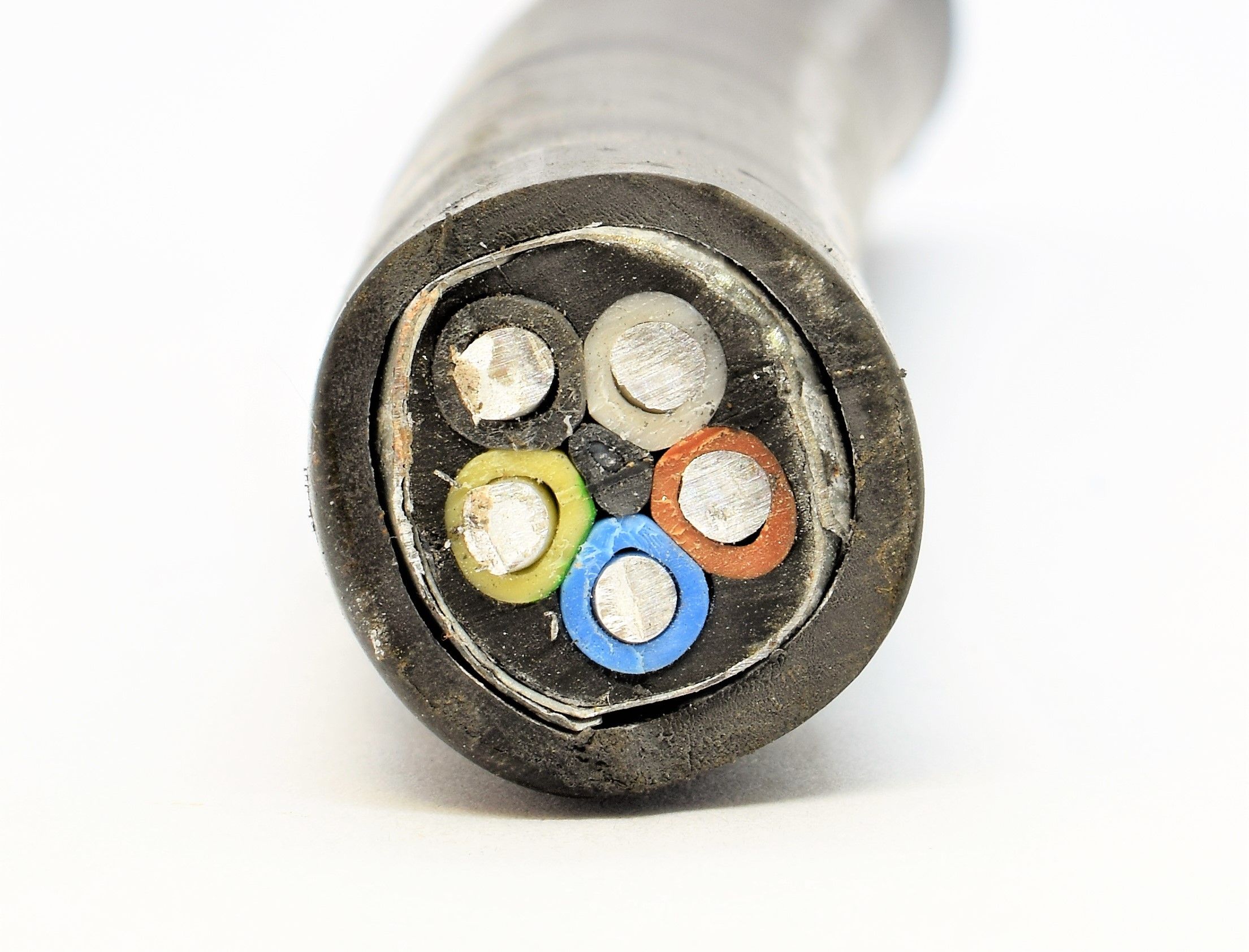 Силовой бронированный кабель с алюминиевой жилой, изоляцией из ПВХ пластиката, броня из стальных оцинкованных лент, защитный шланг из ПВХ пластиката пониженной горючести, дымо- и газовыделением.
