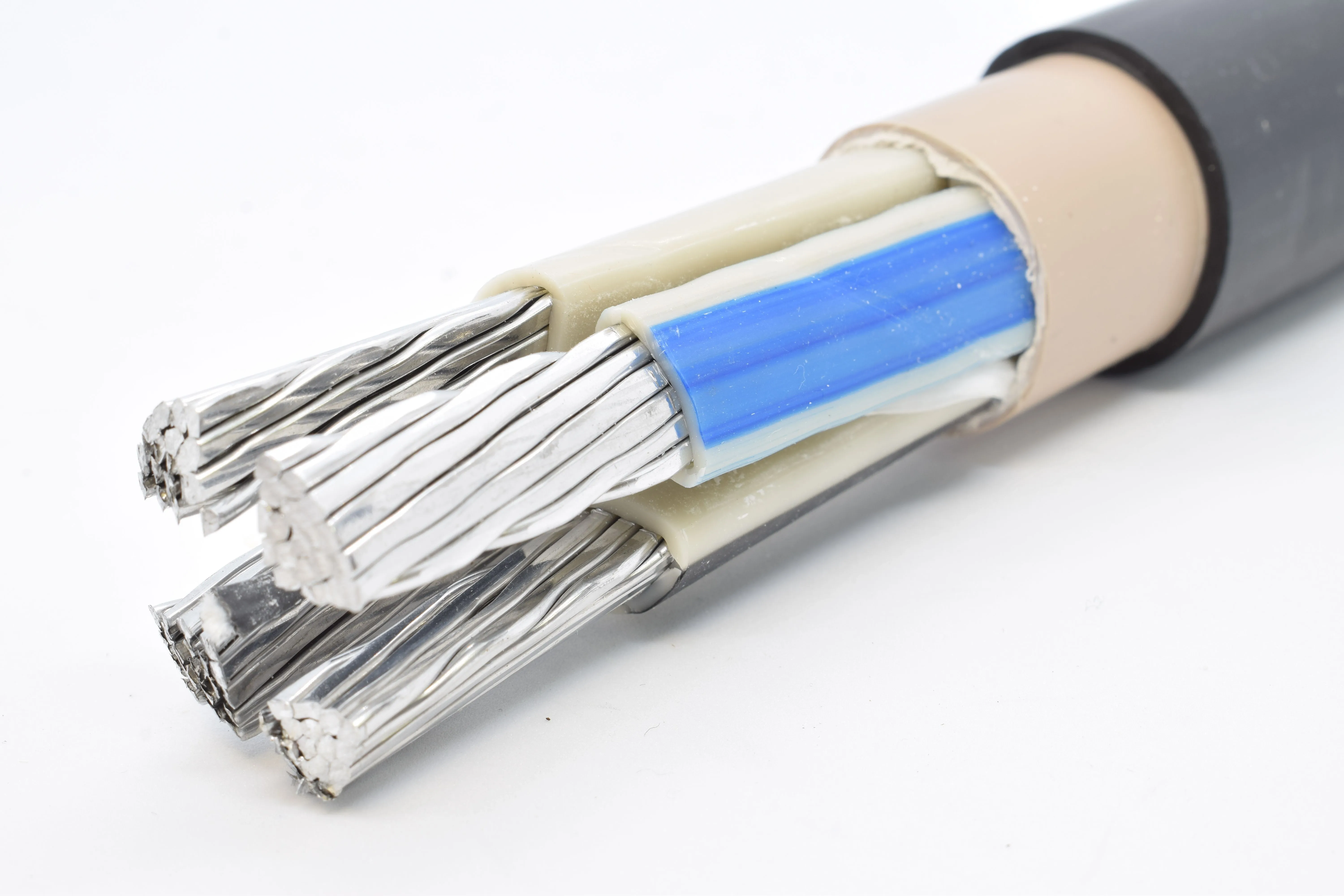 Силовой кабель с алюминиевой жилой изоляцией и оболочкой из ПВХ пластиката пониженной горючести, дымо- и газовыделением.