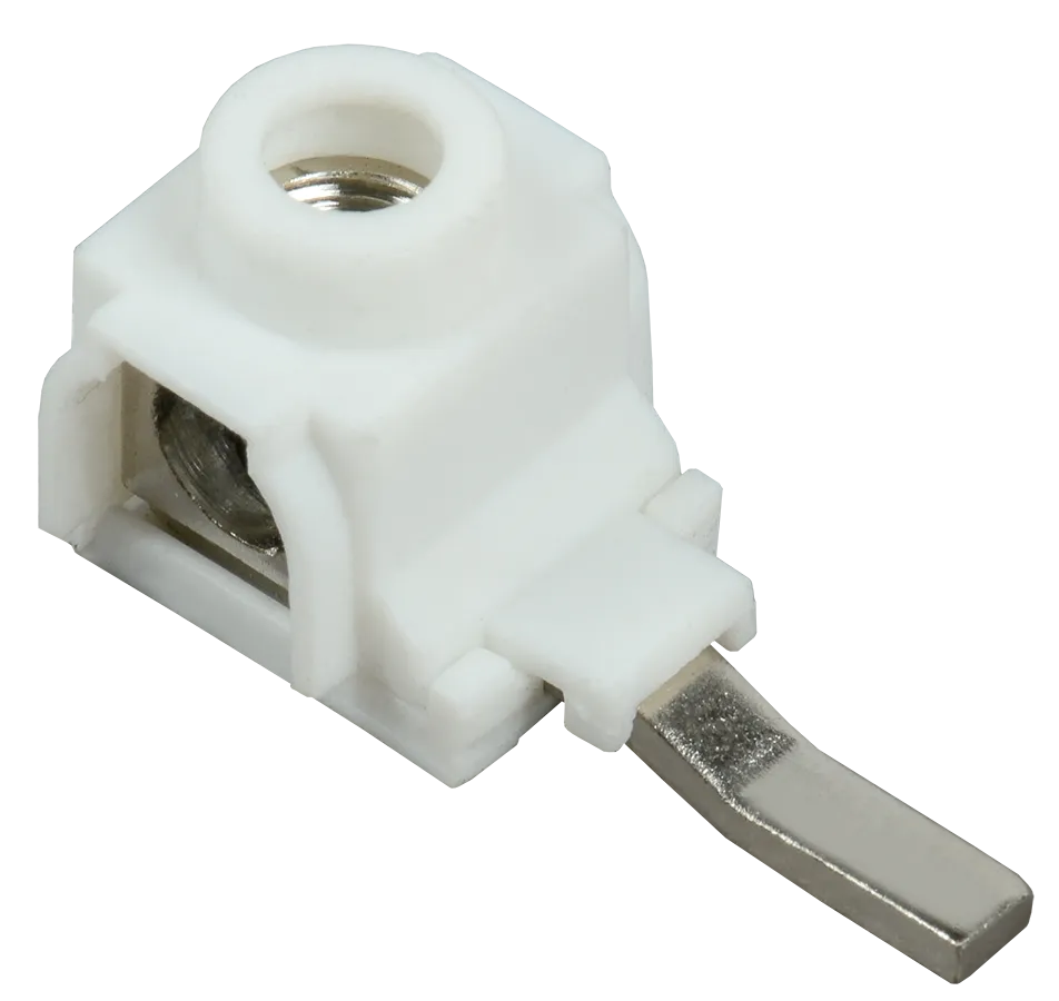 Плоский вывод клеммы обеспечивает надежный электрический контакт с выводом соединительной шины.