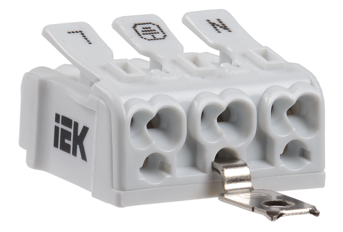 Все клеммы КСП IEK снабжены самонажимными и нажимными контактами, отдельные модели клемм КСП имеют монтажную ножку, внешний металлический винтовой контакт заземления, или оба приспособления одновременно.