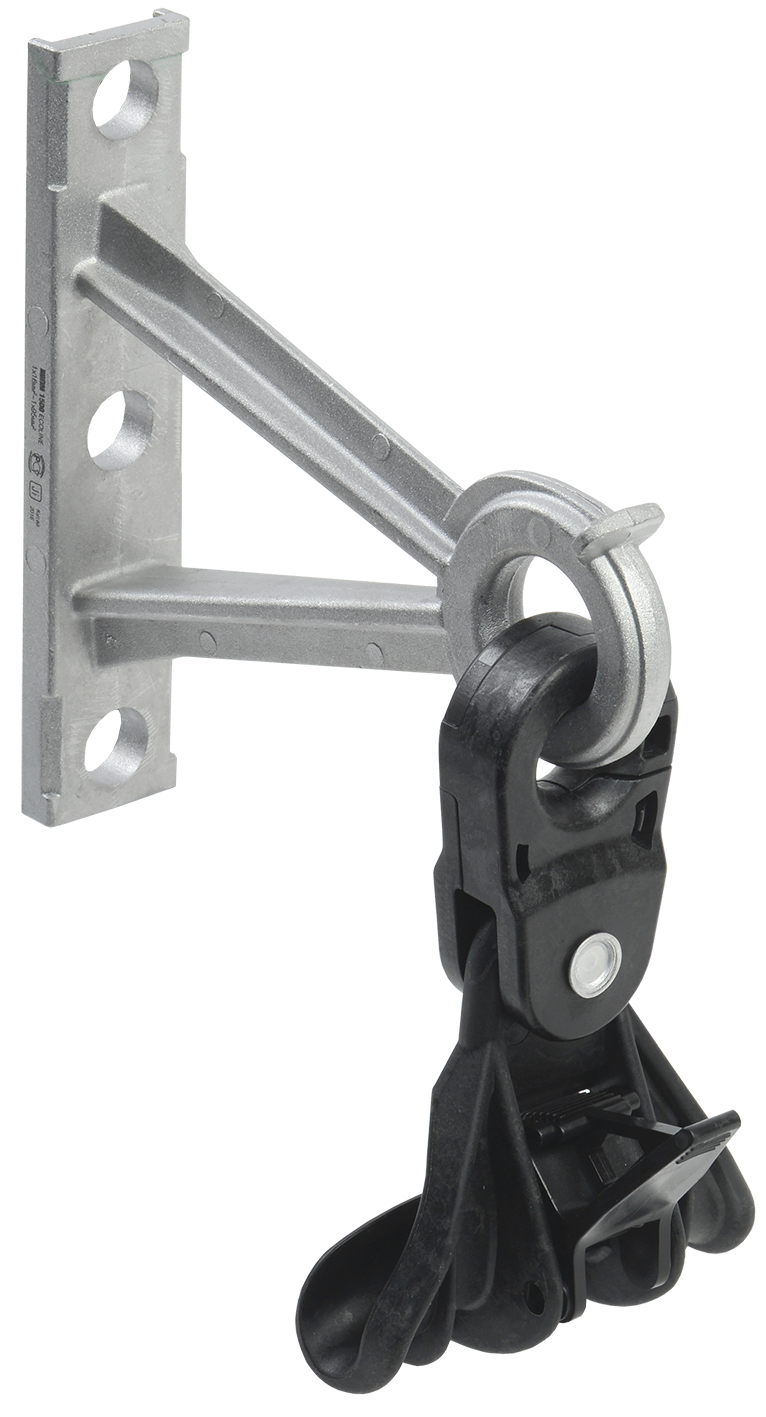 Промежуточные поддерживающие зажимы предназначены для крепления изолированной несущей нейтрали СИП до 1 кВ. Нейтраль фиксируется регулируемым зажимом. Подвижное соединение позволяет зажиму двигаться в продольном и поперечном направлениях. Комплект промежуточной подвески КОПМ 1500 представляет собой кронштейн с выступом в верхней части, не позволяющий зажиму перейти в верхнее положение. Кронштейн имеет отверстие для его крепления к опоре с помощью анкерных винтов, также предусмотрена возможность крепления кронштейна к столбам с помощью бандажной ленты. Для облегчения процесса монтажа ленты кронштейн снабжен разделительными фасками. КОПМ 1500 выполнен из устойчивого к действию коррозии алюминиевого сплава в сборе с поставляемым отдельно промежуточным зажимом ЗПН 1500, изготовленным из полимера, укрепленного стекловолоконной структурой, устойчивого к ультрафиолетовому излучению и погодно-климатическим условиям.