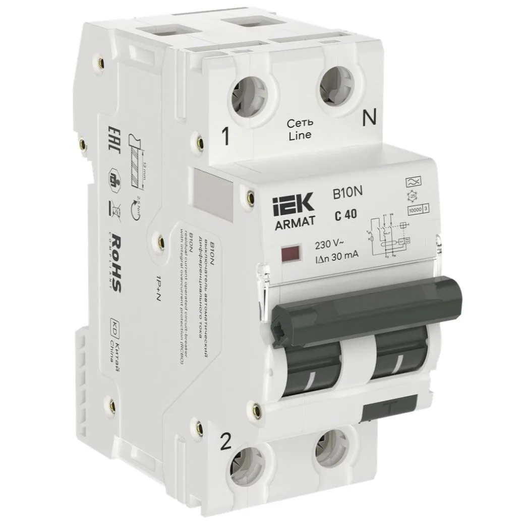 Автоматический выключатель дифференциального тока ARMAT АВДТ B10N 1P+NP C40 30мА тип A (36мм) IEK