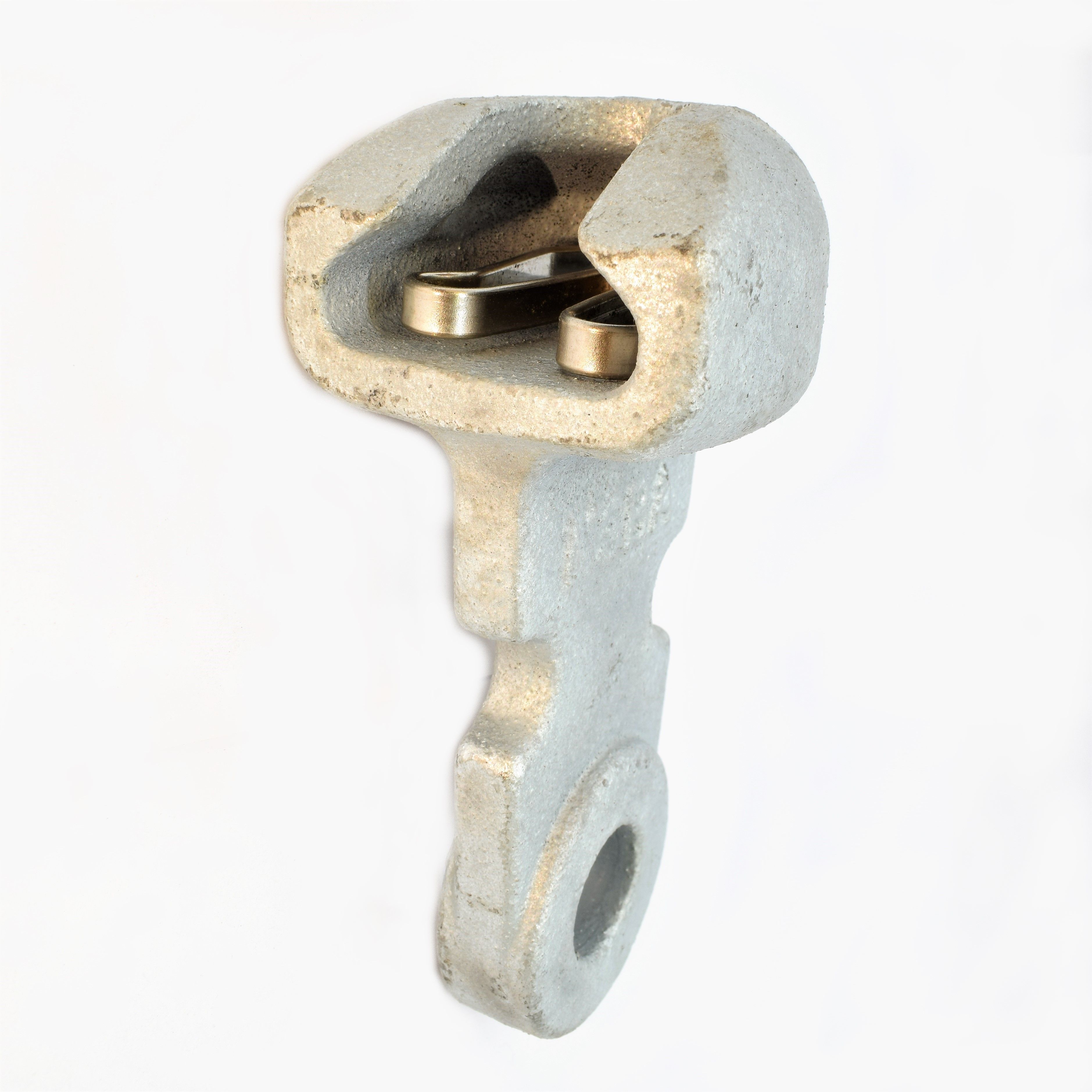 Предназначены для соединения стержня подвесного изолятора или серьги с другой линейной арматурой. Гнездо сферического шарнирного соединения ушек выполняется по ГОСТ 27396-93. Соединительные размеры проушины соответствуют требованиям ГОСТ 11359-75. Для запирания стержня изолятора или пестика серьги в гнезде ушки комплектуются W- образными замками. Ушки для воздушных линий электропередачи выпускаются следующих типов: У1 – ушки однолапчатые; У1К – ушки однолапчатые укороченные. Ушки У1К предназначены для комплектации изолирующих подвесок без защитной арматуры. Их применение сокращает длину и массу подвески.