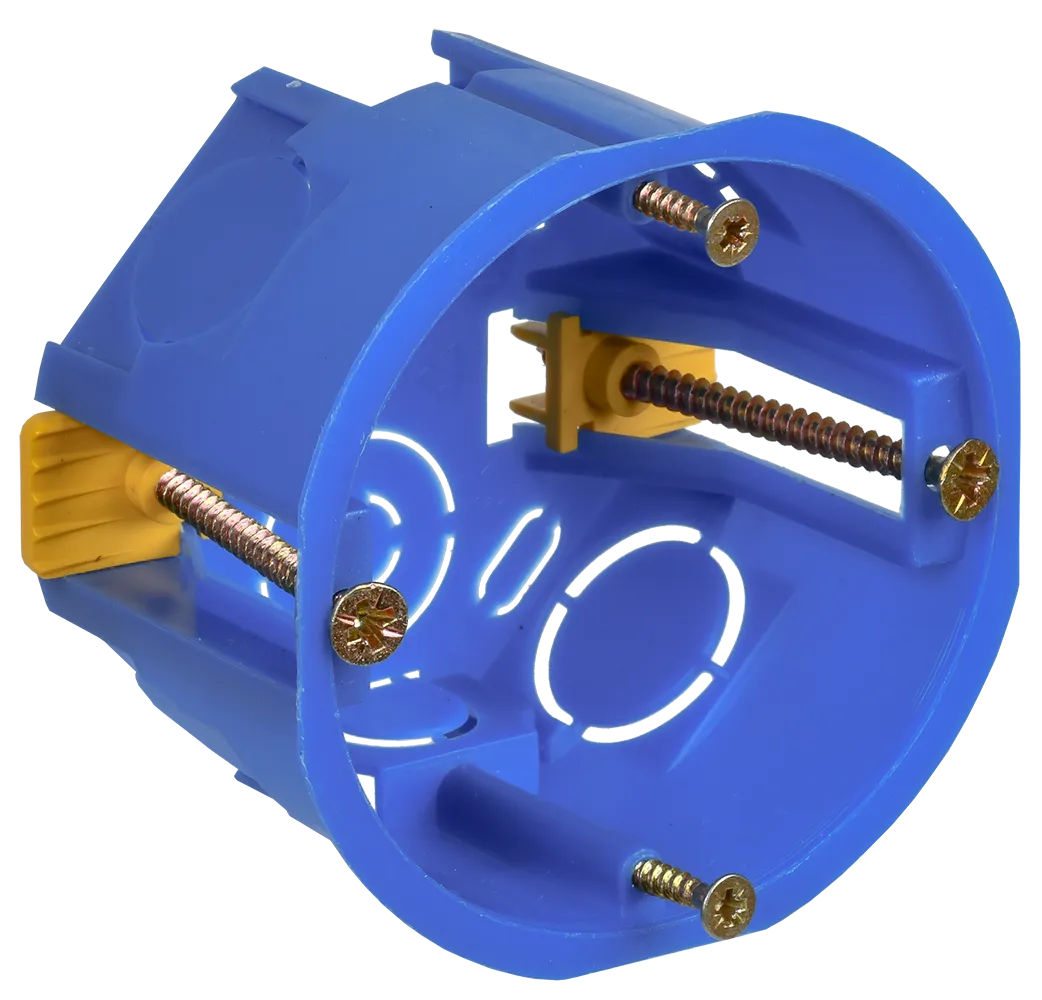 Установочная коробка (подрозетник) глубиной 45мм с лапками предназначена для установки в полых стенах и перегородках и коммутации электроустановочных изделий (розетки, выключатели и т.д.).