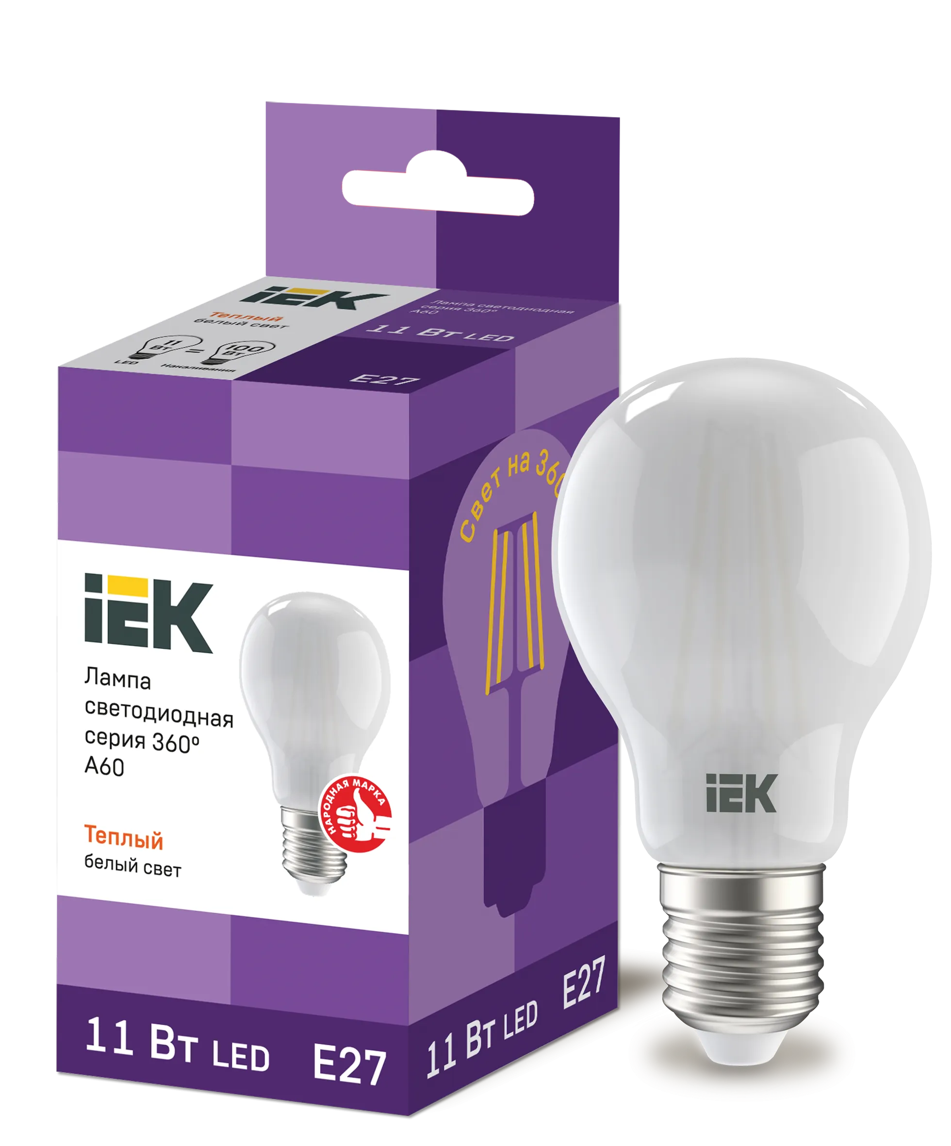 Лампа LED A60 шар 11Вт 230В 3000К E27 серия 360° матовый (филаментная) IEK