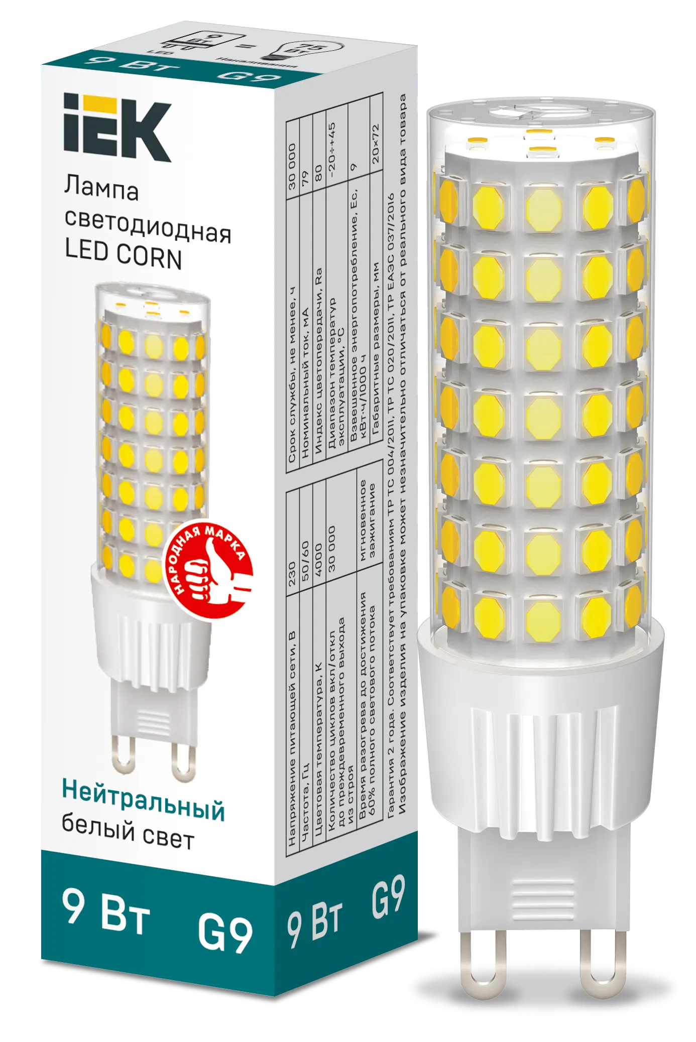 Лампа LED капсула CORN 9Вт 230В 4000К керамика G9 IEK